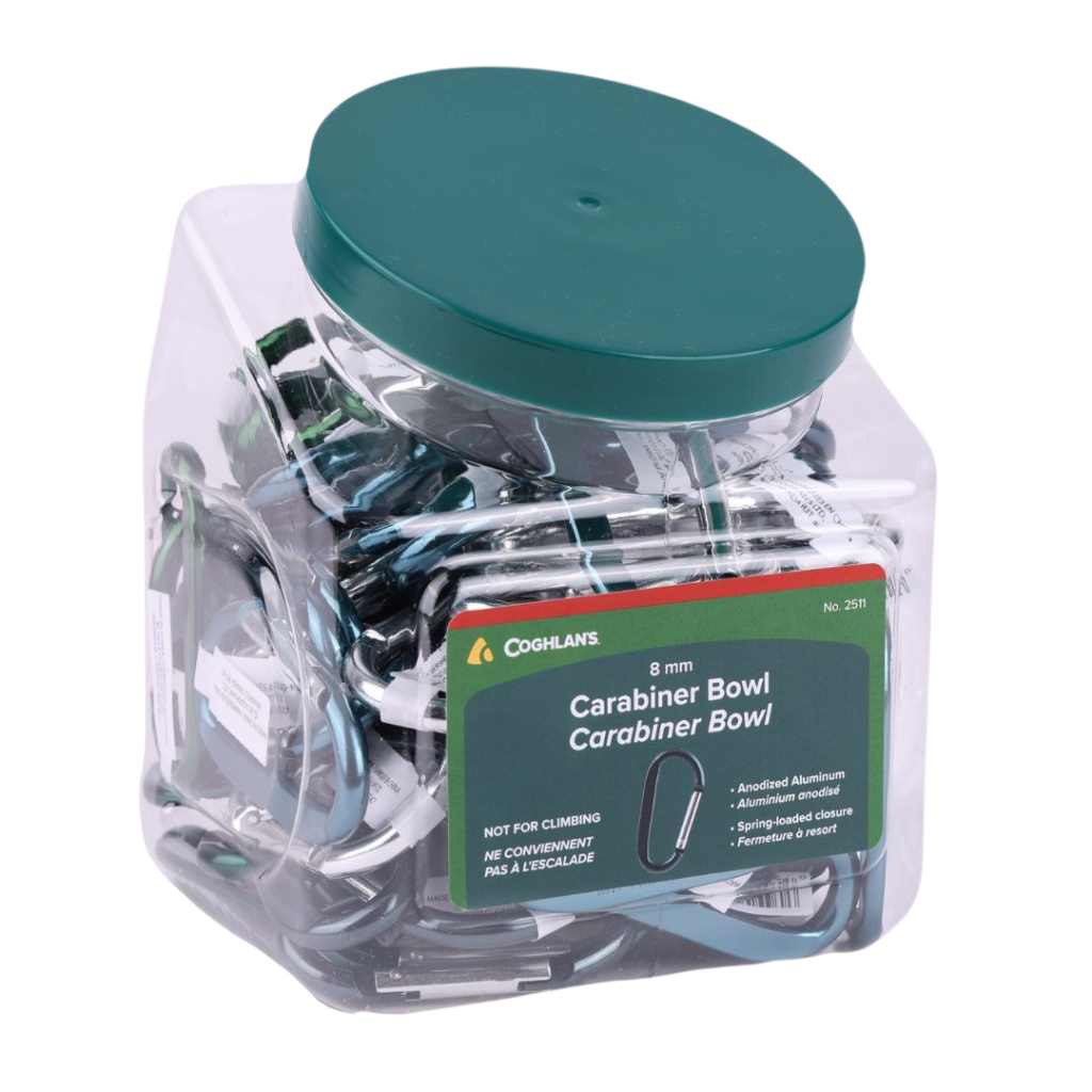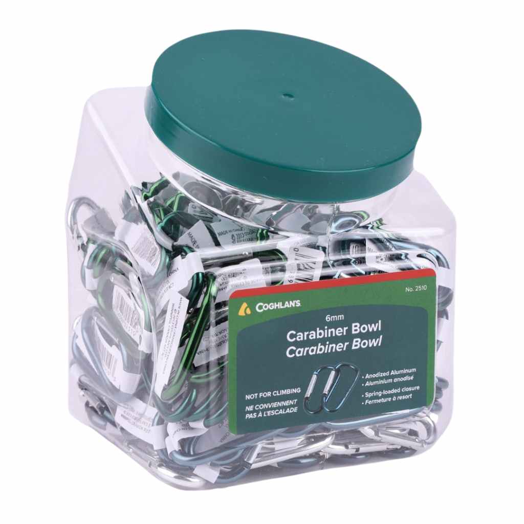 Coghlan's 6 mm Biners offer a handy way to secure equipment, clothing, keys, tools, and more to packs, tents, belts, and boats. Made from lightweight anodised aluminium, they feature a spring-loaded closure that’s both easy to use and securely snaps shut.