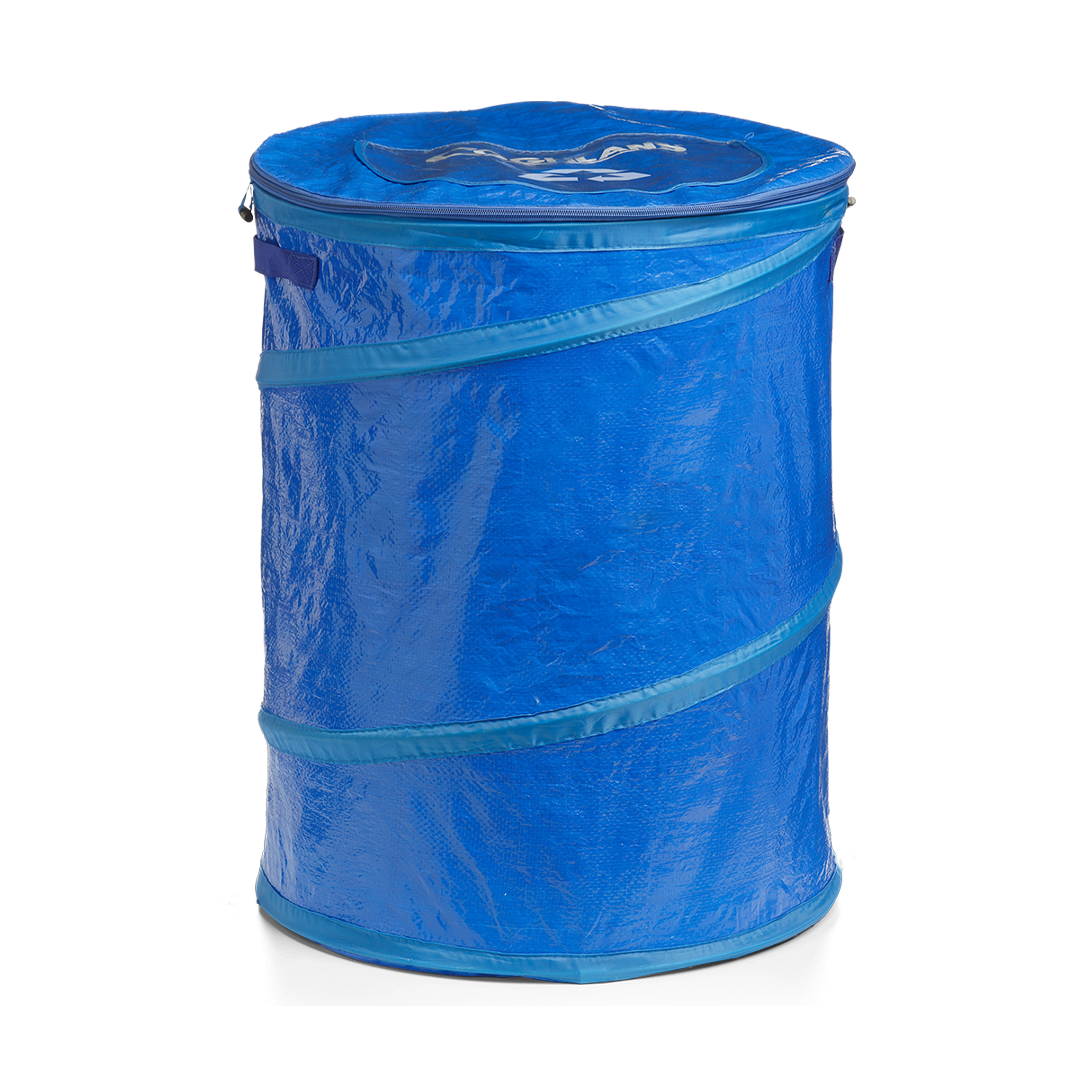 These lightweight containers are handy around the campsite, RV, or the home and are great for garbage, recycling, or storage. Spring loaded and simple to use, just unzip the storage lid and release the tabs and it automatically expands to its full size. When finished using, simply push it down flat, and secure the nylon tabs on the sides. Fully zippered top to deter pests and keep items in place.